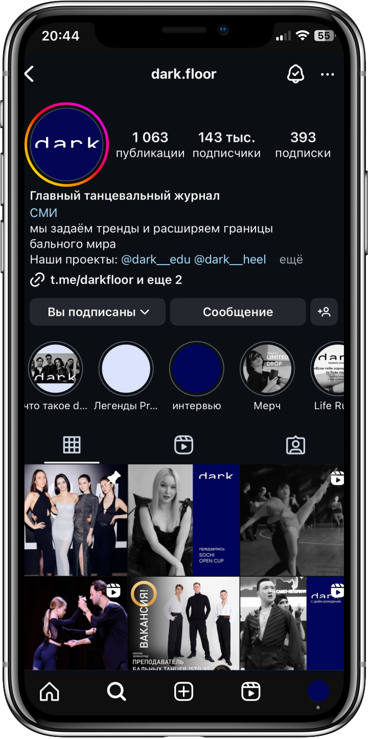 Мы создаем клиентам сильный личный бренд в соцсетях, предоставляем СММ услуги, запускаем инфопродукты, раскручиваем новые имена в танцевальном сообществе.